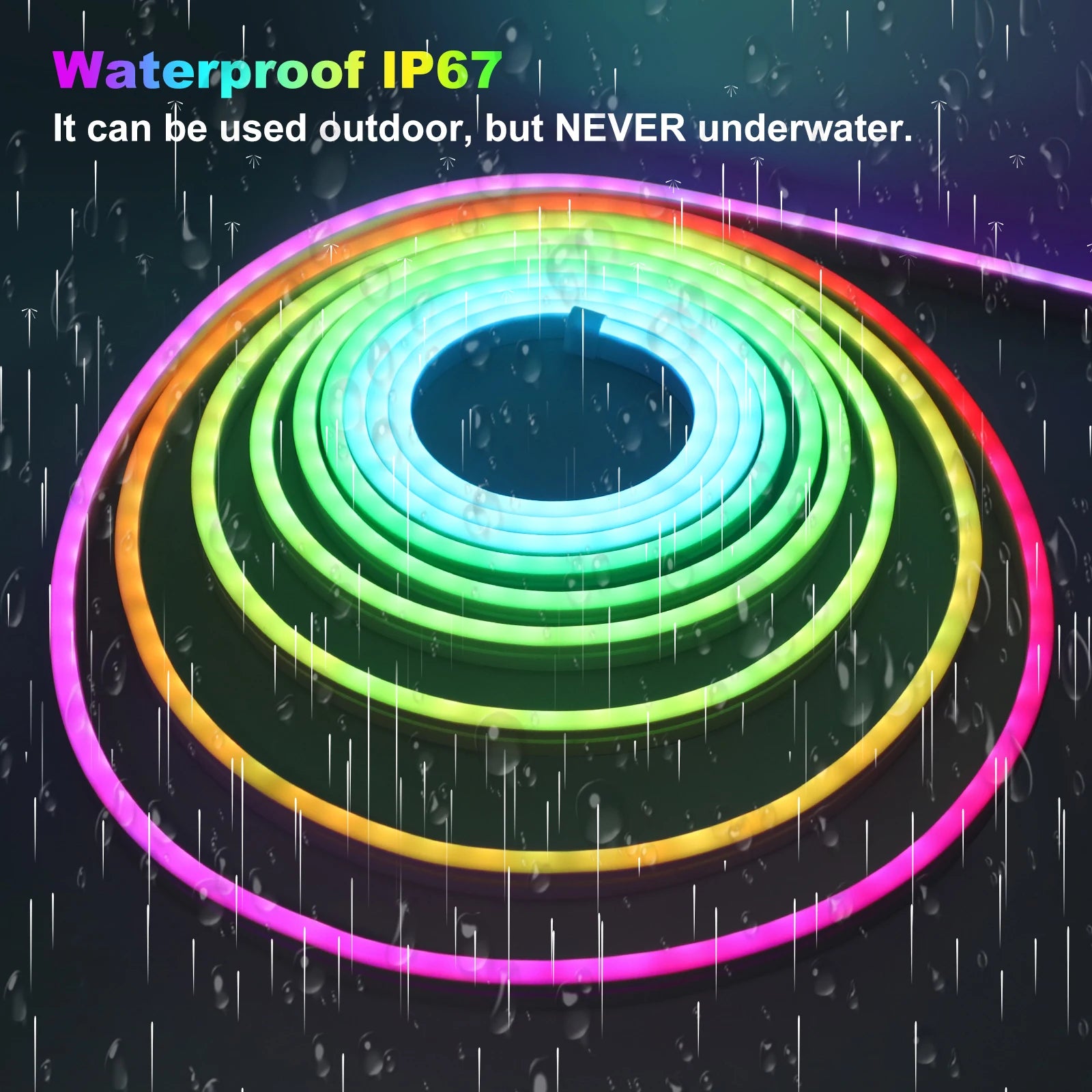 Premium RGBIC Neon LED Strip Light - WS2811 Waterproof Flexible Rope Light 84 LEDs/M (12V/24V, 2-20M)