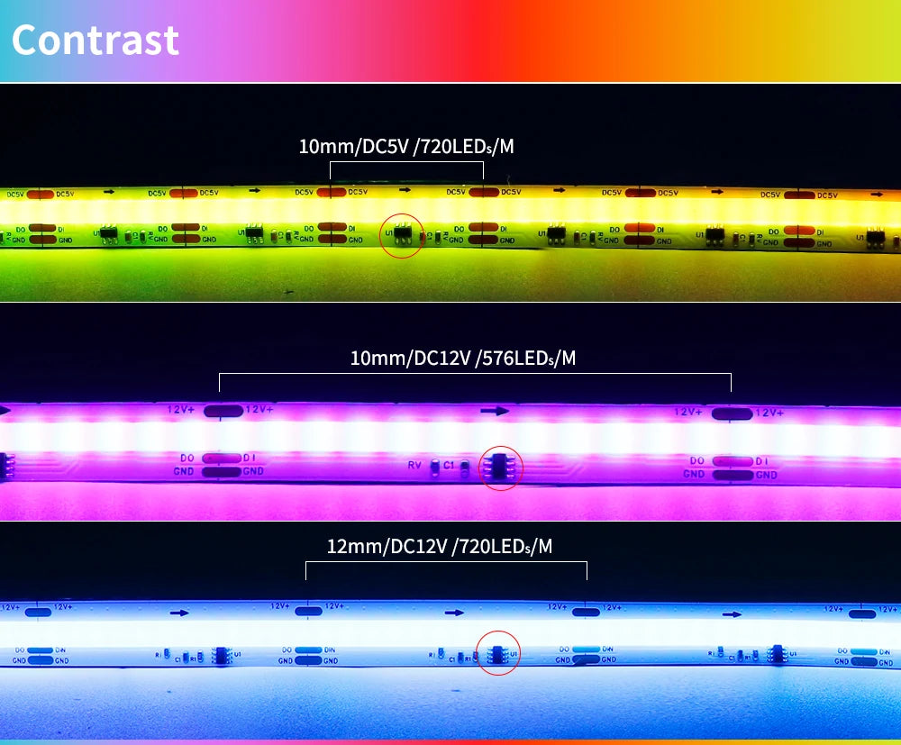 Achieve professional-grade programmable lighting with our Smart SPI RGBIC COB strip featuring WS2811 addressable technology. Available in multiple voltage options and PCB colors, this chip-on-board strip delivers smooth, dot-free illumination with full programmable control for advanced lighting installations.
